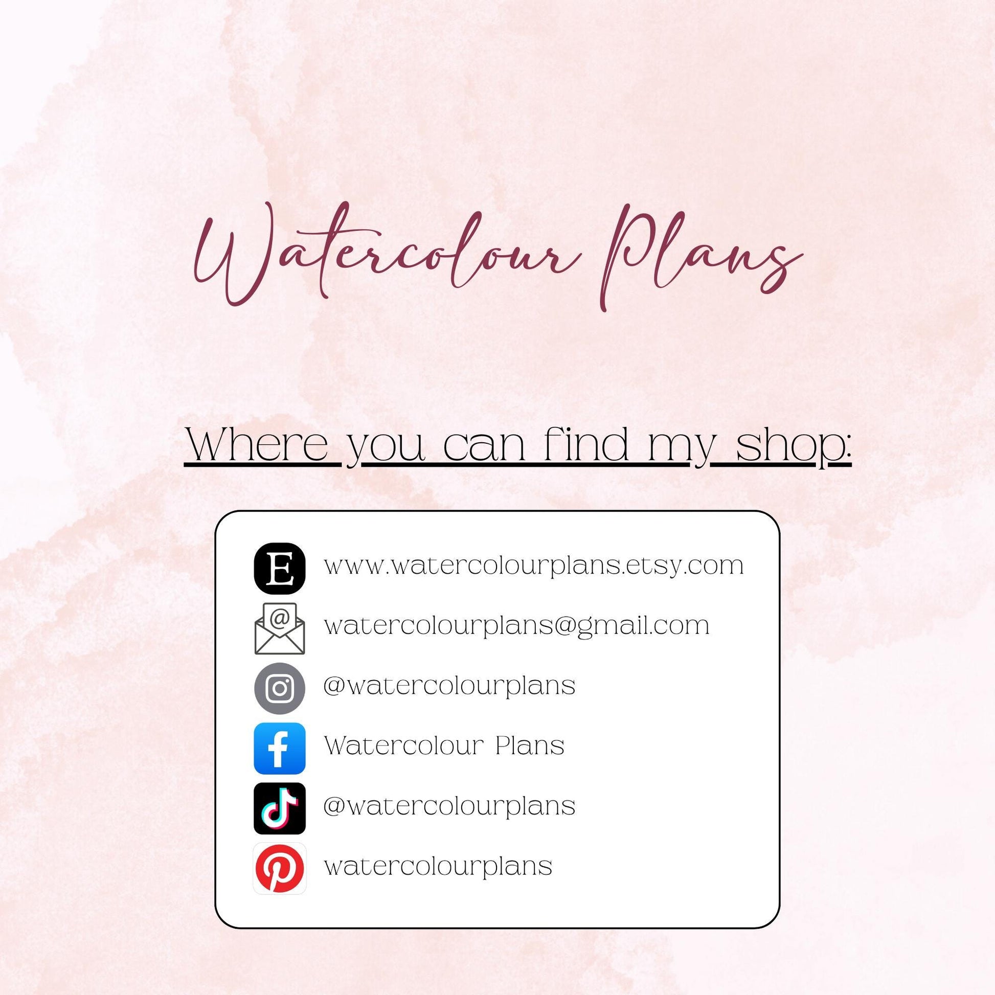 At Watercolour Plans, my designs start out as purchased clip art. Then, using a drawing program and imagination, I alter, modify, and combine pieces to create unique, one-of-a-kind images. I hope these images will bring joy and add a touch of watercolour to your planning and journaling experience.